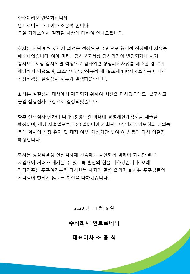 Global Healthcare Leader 인트로메딕의 투자정보 안내입니다.